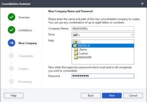 - You will be prompted to name your new consolidated company.