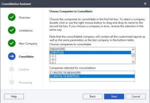 - You will be taken to a window where you can select the companies to consolidate.