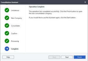 Congratulations! You have successfully consolidated your companies and can now start working in your new consolidated company.