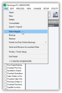 The Data Integrity function in Sage 50cloud Pastel helps analyze and correct data inconsistencies. Follow these steps to use this feature: